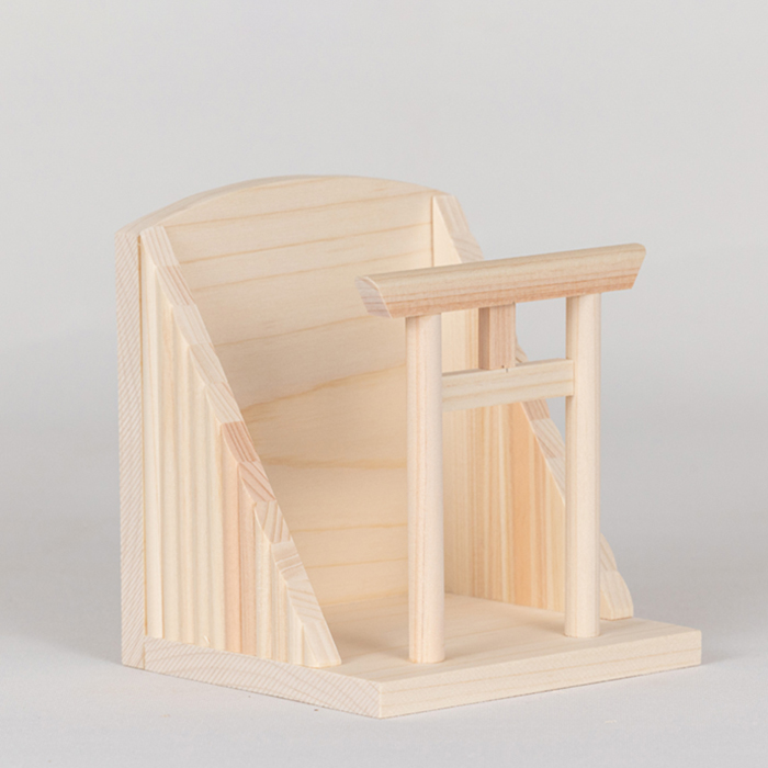 神棚の屋根や鳥居は、とても繊細なつくりになっております。ダンボールから取り出す際は、これらの部分を持たずに、台座や本体のしっかりした部分をお持ちいただけますと安心です。