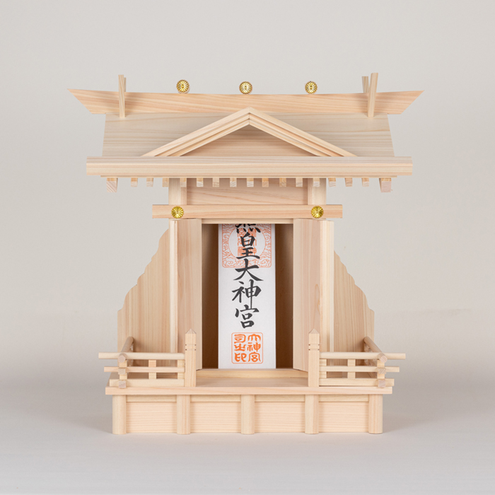 神棚の屋根や鳥居は、とても繊細なつくりになっております。ダンボールから取り出す際は、これらの部分を持たずに、台座や本体のしっかりした部分をお持ちいただけますと安心です。
