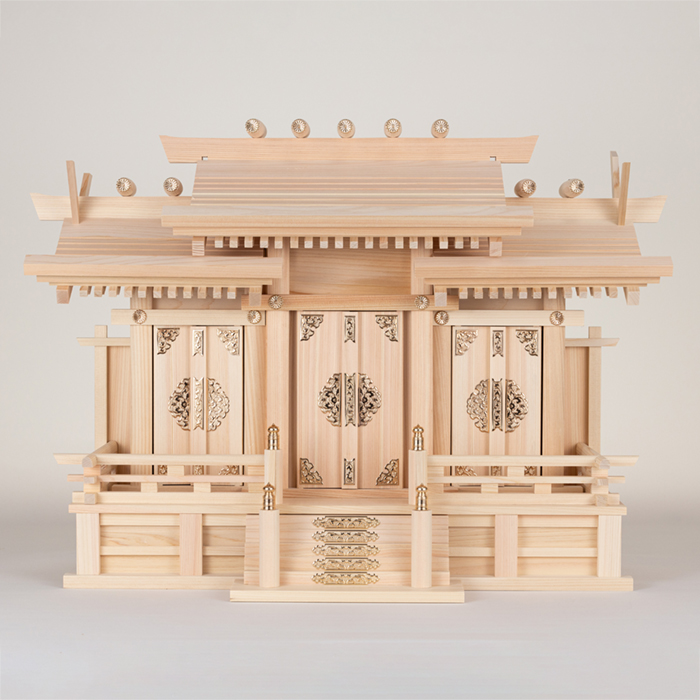 神棚の屋根や鳥居は、とても繊細なつくりになっております。ダンボールから取り出す際は、これらの部分を持たずに、台座や本体のしっかりした部分をお持ちいただけますと安心です。